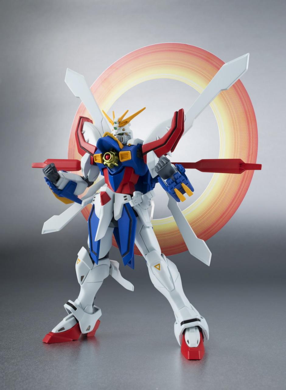 Make way for the long-awaited Robot Spirits God Gundam! Gundam Fight All Set. Ready! Gooooo! We pulled out all the stops, using the latest in articulation technology! This is the ultimate action figure! Also known as Burning Gundam in the U.S., moveable joints are expertly placed to allow for the hand-to-hand combat poses unique to the Mobile Fighter including the famous God Finger New technology also allows for a twist in the knee that was not possible before. This God Gundam was made to move! Set includes 3 interchangeable hand parts, God Slash (x2), interchangeable wrist covers (x2), Ring of Light part (PET).