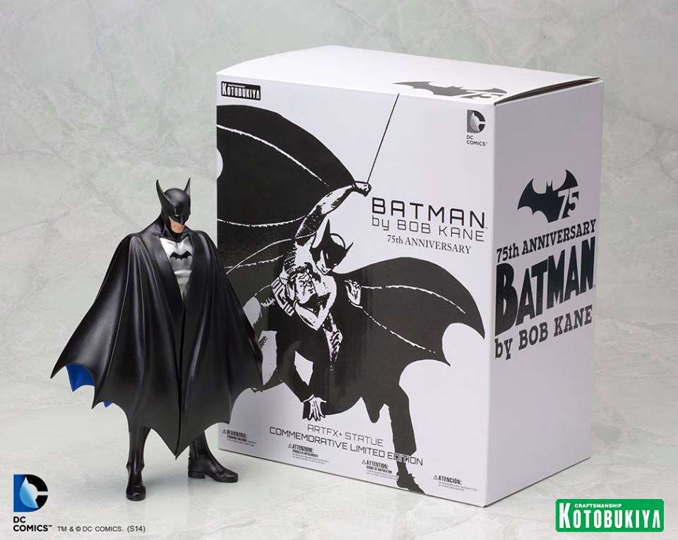 Created by artist Bob Kane and writer Bill Finger Batman has been thrilling readers young and old alike for 75 years. To commemorate this milestone anniversary Kotobukiya has created an extremely limited edition ARTFX+ statue of the “Bat-Man” as he first appeared in Detective Comics issue #27.