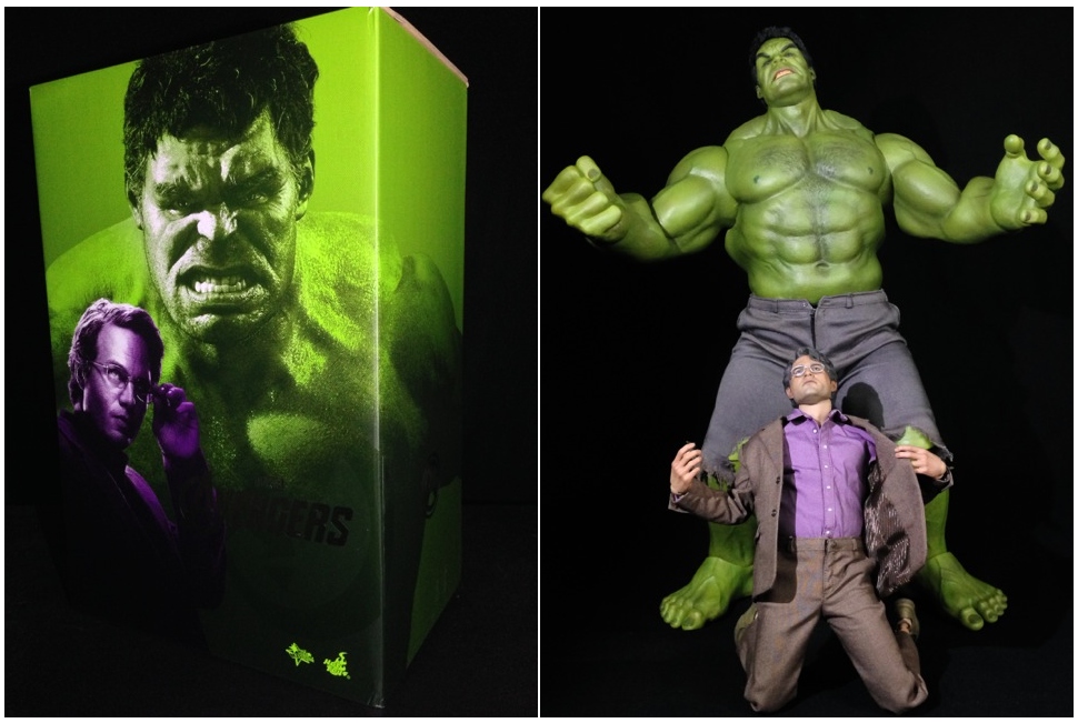 We have uploaded over 65 new photos of Hot Toys' latest 1:6th scale Avengers figure release: MMS230 Bruce Banner and Hulk. This set packs mild mannered scientist Bruce Banner (as played by Mark Ruffalo) and his angry alter ego The Incredible Hulk. Full review coming soon...