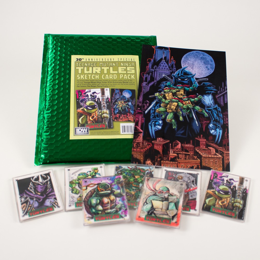 Available online now through idwlimited.com, each $75 collector's pack will feature the IDW Limited virgin variant cover of the Teenage Mutant Ninja Turtles 30th Anniversary Special and a hand-drawn 2.5" x 3.5" sketch card from a pool of classic Turtles artists and current sketch card kings, including Kevin Eastman, Dan Berger, Jim Lawson, and Danny Kuang.