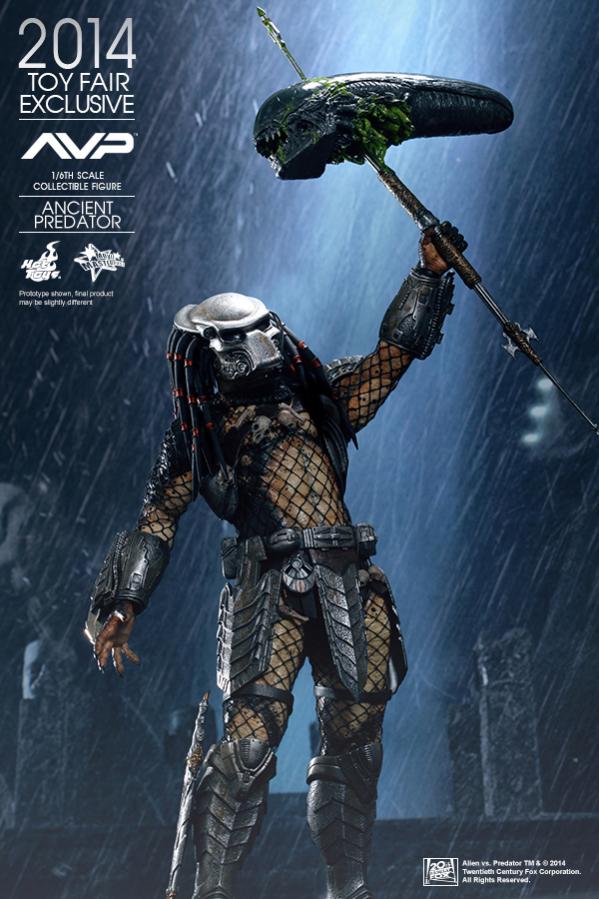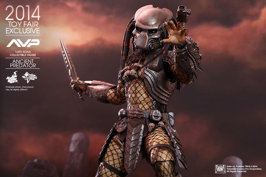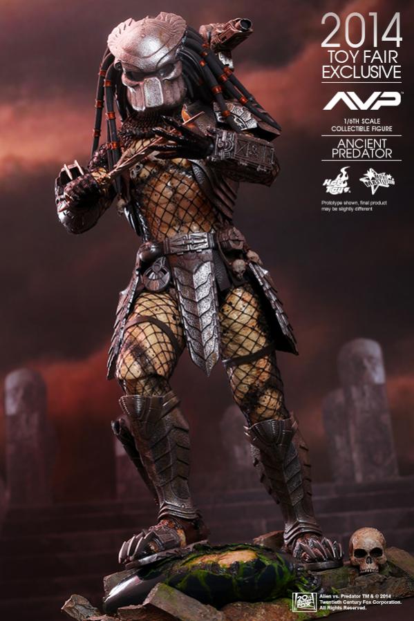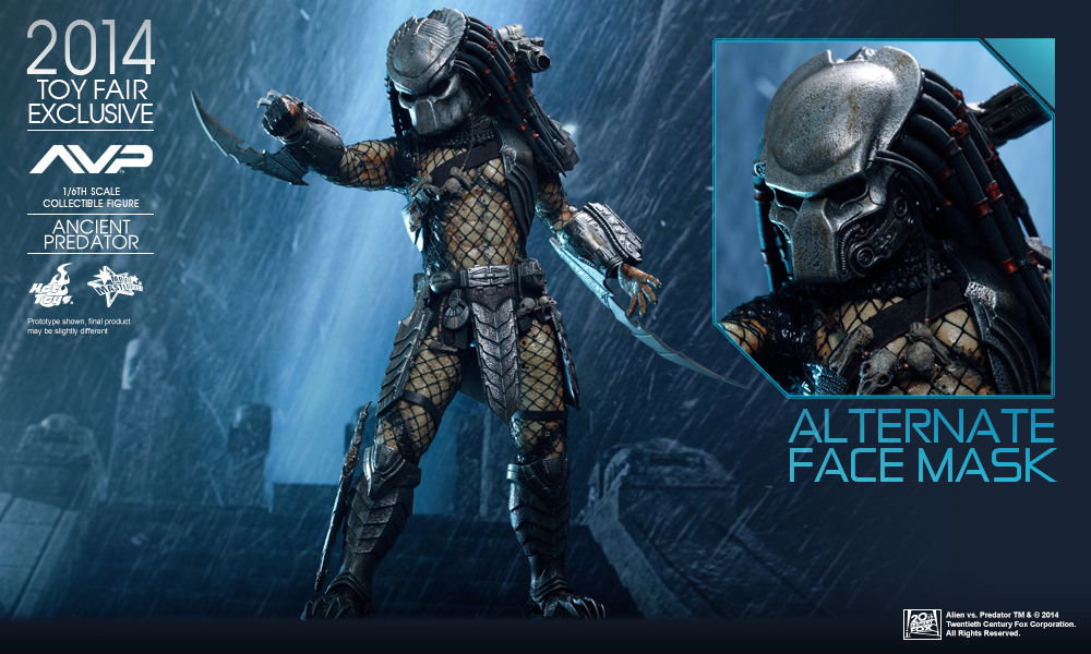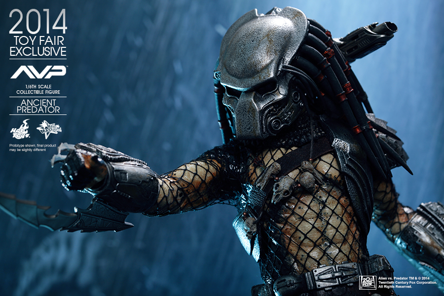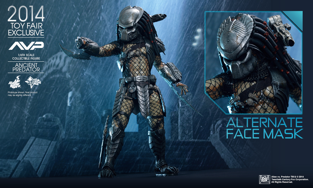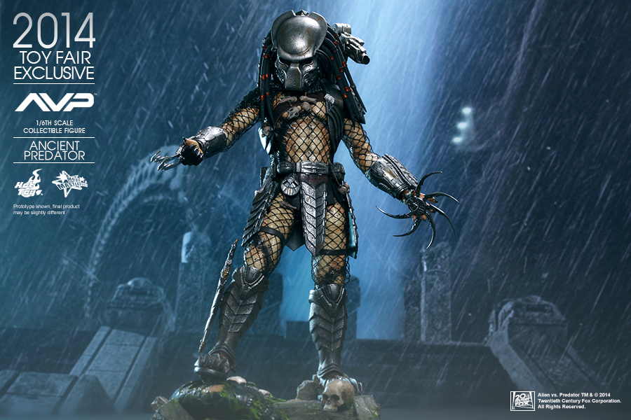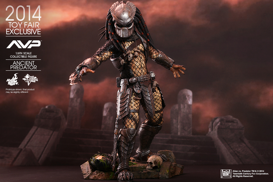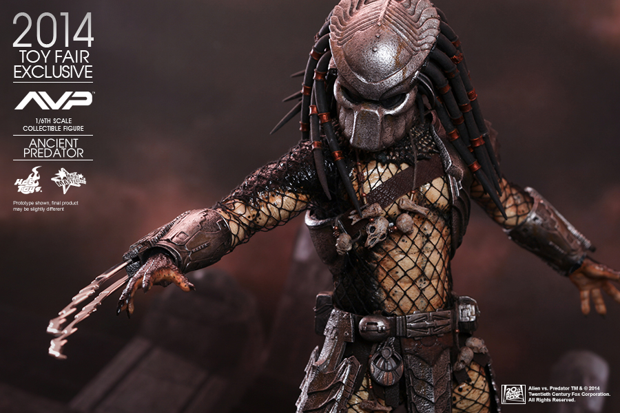 In a flashback scene in Alien vs. Predator, we learned that Predators have discovered Earth and taught humans how to build pyramids. In return the people worshipped them as gods, willing to sacrifice themselves as alien hosts for predators to hunt and prove their mark! Hot Toys presents this new summer convention exclusive: the 1:6th scale Ancient Predator.
