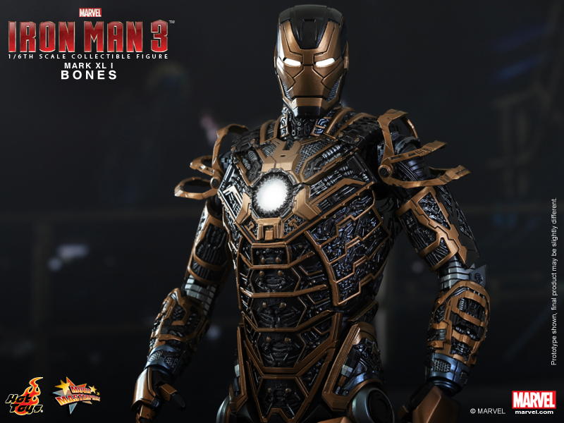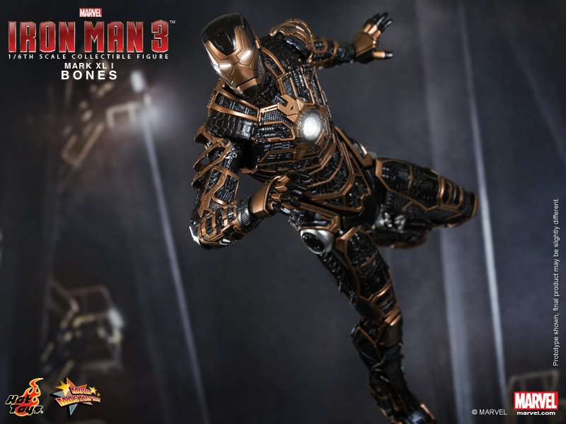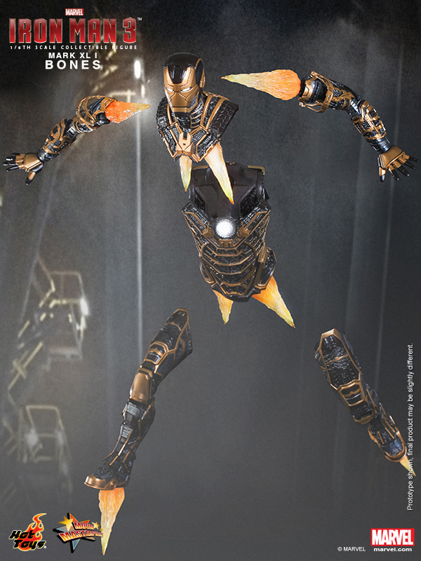 - Authentic and detailed likeness of Bones (Mark XLI), the Skeleton Suit, in Iron Man 3