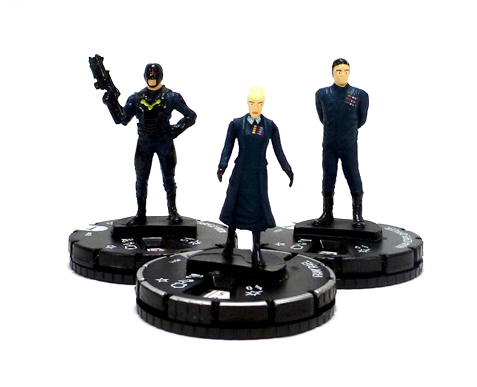 Movie HeroClix sets like Guardians of the Galaxy offer fans and players a unique opportunity to collect and play alternative versions of comic book characters in terms of both dials and sculpts. Many of the main characters in this set have appeared in the game once or twice, but now, for instance, a Guardians fan can reach for the comic book Star-Lord or one of the movie figures. As noted above, they also serve as neat collectibles of the film’s characters and as such feature very highly detailed sculpts for their small size. In particular WizKids is always improving their likenesses of real actors and CG characters. There’s also a nice range of poses as appropriate to the characters. Common Star-Lord blasts at his enemies with a wide-legged gunfighter stance while Ronan the Accuser threatens mayhem with his Cosmi-Rod, and the forces of the Nova Corps stand at attention. There’s a lot of great texture work like Groot’s bark skin, Rocket’s fur, and Sakaaran armor. Standouts for me include common Star-Lord with his detailed mask, the Sakaaran Commander whose face is truly horrific (and unfortunately too small to see easily in photos), and of course the always awesome Rocket and Groot. Meanwhile, look for good likenesses of actors on figures like chase Star-Lord (Chris Pratt), Irani Rael (Glenn Close!), Yondu (Michael Rooker), Nebula (Karen Gillan), and more.