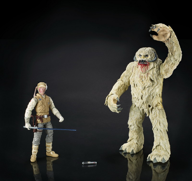Hasbro held their Star Wars panel today at San Diego Comic-Con. We'll have a full in-depth report for you soon, but we wanted to share with you ASAP new press and panel photos. Big news from the panel was the unveiling of new 6" scale Star Wars Black Series figures and creatures. These included bounty hunter Bossk, a TIE-Fighter Pilot, Han Solo in Stormtrooper Disguise, as well as two deluxe two-packs: Han Solo (Hoth Gear) with Tauntaun and Luke Skywalker (Hoth Gear) with Wampa! Check them out at the links below.