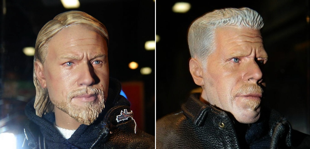 As announced HERE, Pop Culture Shock Collectibles had acquired the license for Sons of Anarchy to produce 1:6th scale action figures and 1:4th scale mixed media statues. Debuting at Comic-Con were the first two figure releases: Jackson "Jax" Teller and Clarence "Clay" Morrow. Both 12" figures featured intricate tailoring on their biker gear, including all their SAMCRO patches, and the likenesses to Charlie Hunnam and Ron Perlman were spot on. These two figures are releasing in the winter of 2015 priced at a SRP of $200 each.