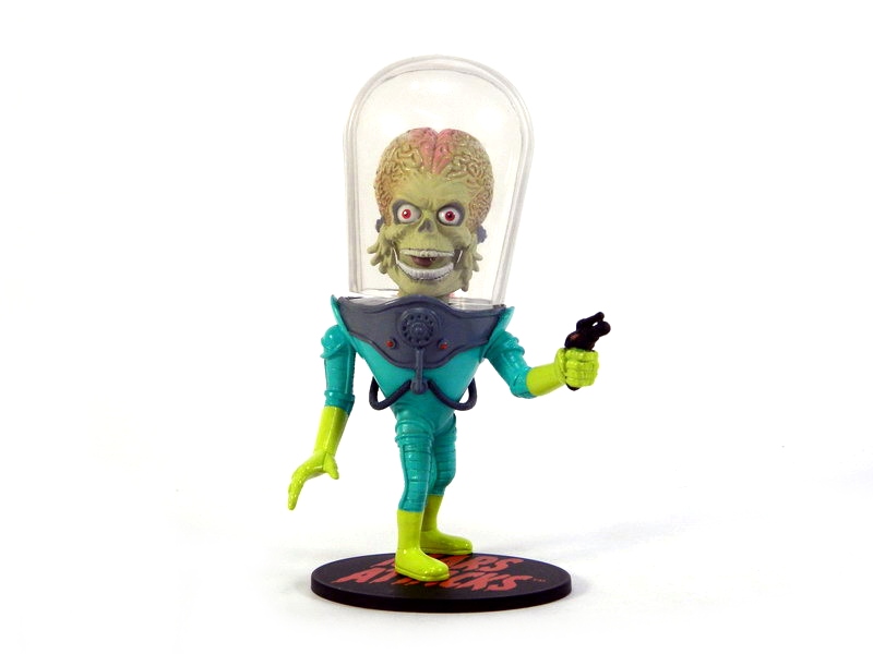 While funny, the Baracula Jr. included in the Con-exclusive 2-pack wasn't my thing. My sole interest was in the Martian. Lucky for me, Heroes in Action was offering the Mars Attacks Jr. figure individually blistered! While non-poseable, the figure delights with its cool retro-alien sculpt - the perfect addition to any Mars Attacks collection. Check out more photos of this figure at the link below.
