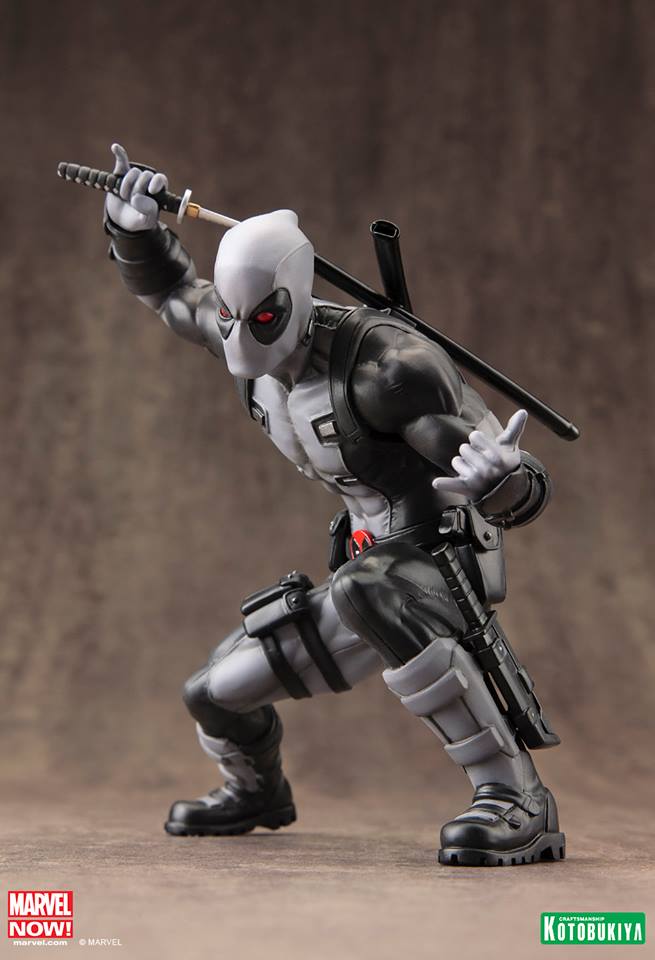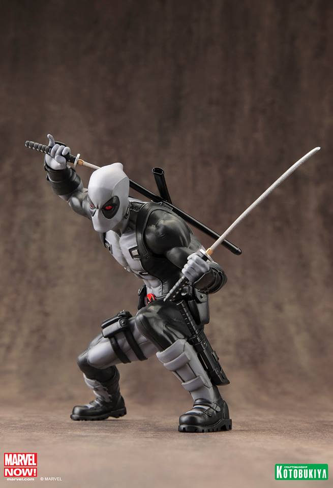 Kotobukiya unveils an exclusive color variant for their Deadpool ARTFX+ Statue: the "Merc with a Mouth" dressed in his grey X-Force costume. Like the standard Marvel Now release, collectors can choose between interchangeable left hands that either give Deadpool a thumbs up or wield a second sword! The Deadpool X-Force ARTFX+ Statue will be available exclusively thru Diamond Comic Distributors this March priced at around $55.