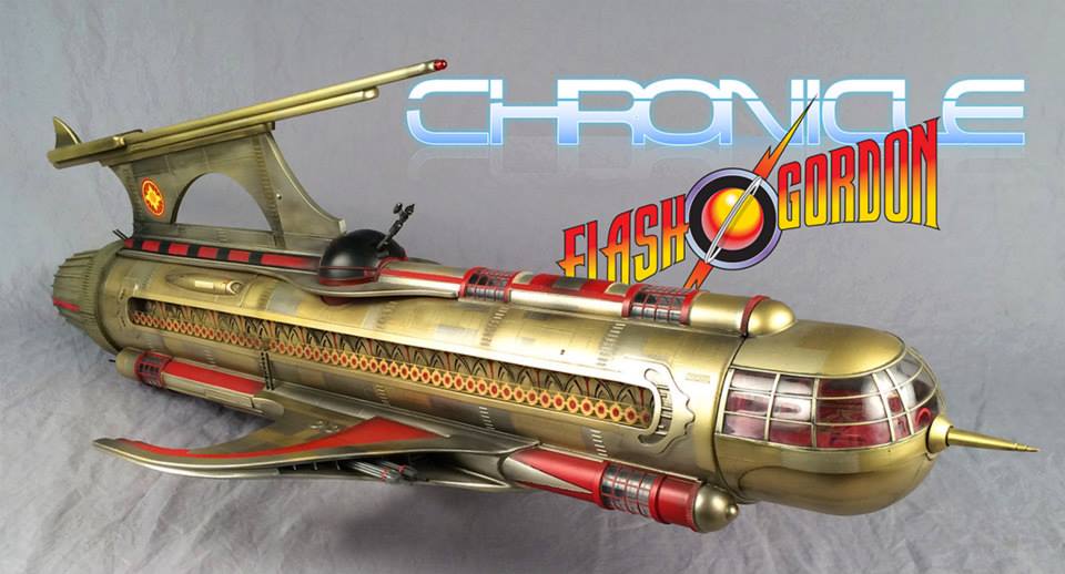 Authentic prop maker Chronicle which we introduced to you with our Comic-Con coverage HERE is expanding their sci-fi replica arsenal to include the 1980 cult-classic Flash Gordon. One of the first collectibles to see release will be Ming the Merciless's mighty spaceship, the War Rocket Ajax. More details to be announced... "DIVE!"