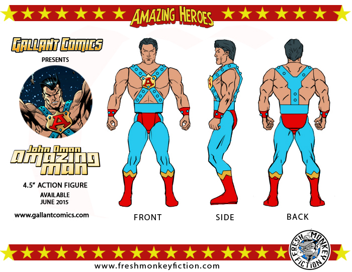 With only a week left to reach it's funding goal, Gallant Comics has jumped head first into the Amazing Heroes Kickstarter in order to produce a limited amount of Amazing Man action figures based on their comic book John Aman: Amazing Man. Fans of the Amazing Heroes Kickstarter will be able to order their own Amazing Man figure directly from Gallant Comics in June 2015.