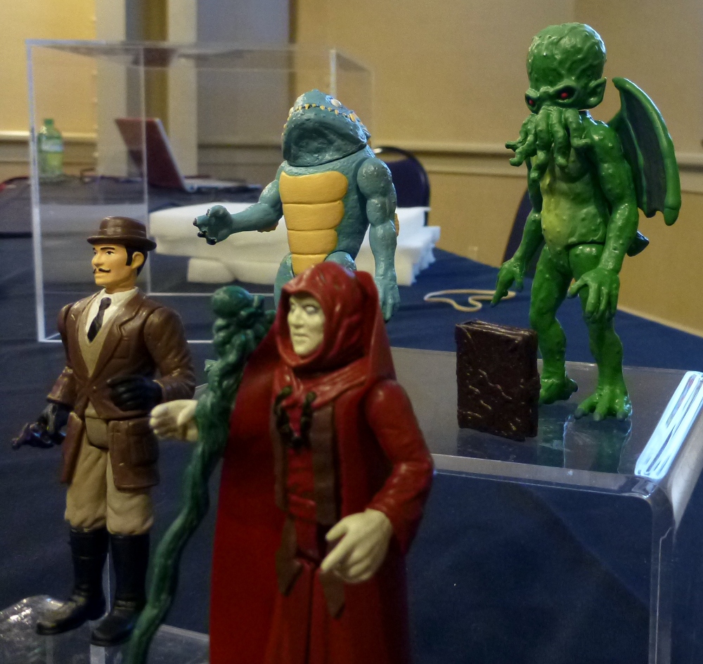 If you’re unfamiliar with it, Gen Con is the “best four days in gaming,” a convention that descends on Indianapolis each summer focusing on role-playing games, miniatures, card games, and every other type of gaming you can imagine (if you want to know more, check out the full coverage over at CritToHit.com). It’s a really cool show, and not least of all because there are always interesting and unique things to find there. This year among all of the various game companies was a standout new toy company that you may be following like we are, Warpo! Comprised of toy experts and enthusiasts Bryan Katzel, Tommy Baldwin, and Eric Lefeber, Warpo came onto the scene earlier this summer with a Kickstarter campaign to produce their first series of toys. Legends of Cthulhu is a unique 3 ¾ inch figure line that takes its inspiration from late 70s/early 80s toys as well as the creatures and characters of H.P. Lovecraft’s stories! At Gen Con I got to learn all about the company and their toys at a panel on Sunday, and we got some great new photos of the prototypes.