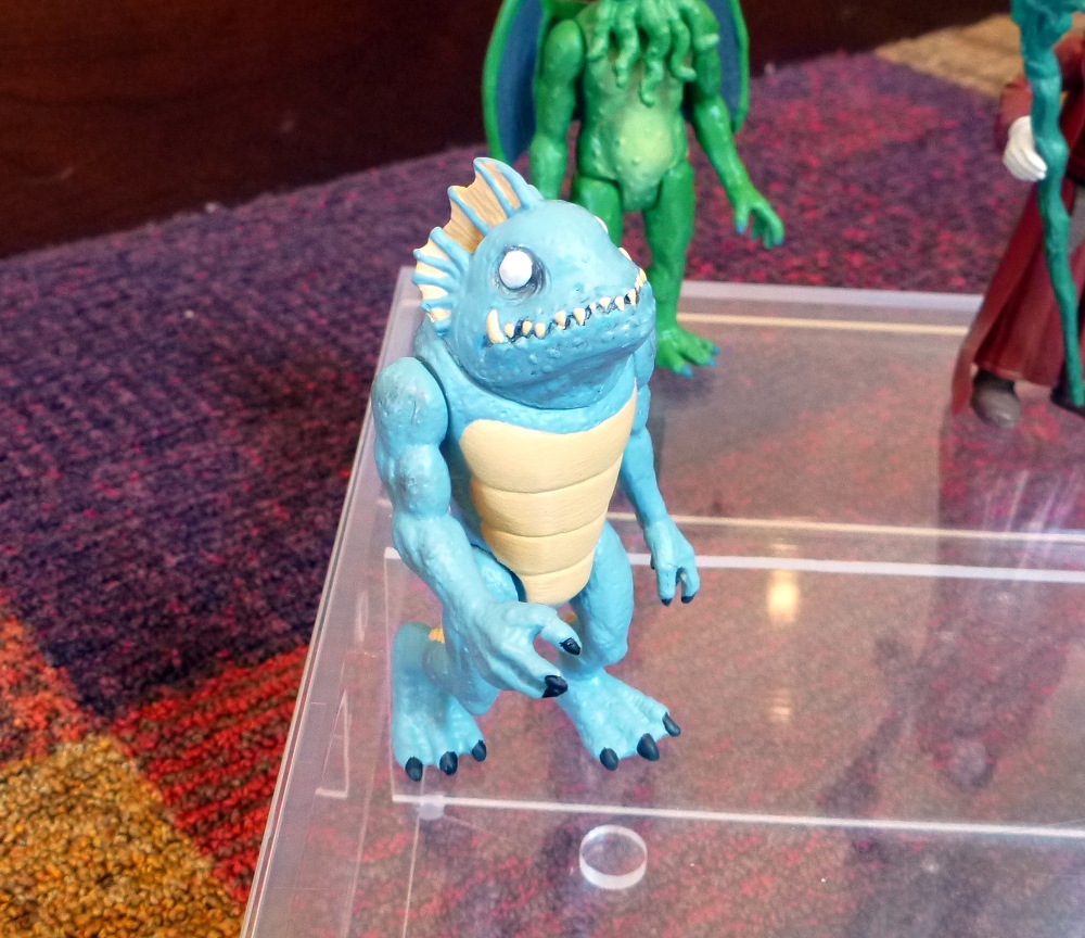 First off, it’s interesting to note that the Warpo guys did not create the company in order to make Lovecraft toys. But when they were putting together ideas on what to make and, possibly even more importantly, what to make first, they kept coming back to their favorites which included early 1980s toys, the 3 ¾ inch scale, and the horror/fantasy creatures of Lovecraft! The 70s and 80s saw many fantasy-inspired toy lines, but while several other companies are delving into 80s-inspired figures currently there isn’t a whole lot in the way of fantasy. And, while Lovecraft is consistently popular and well-represented in gaming and other products, not so much with action figures. Once Warpo hit on the base concept for Legends of Cthulhu, it was time for research. They started with choosing the right lineup of characters, looking to toy designers from their chosen era and examining the archetypes that made it to shelves. Despite Lovecraft’s stories focusing more on the monsters and gods, Legends would require a “hero” to be authentic, and that’s what led to the more bookish pre-Indiana Jones styled Professor figure. The other figures fell into place with a combination of well-known creatures (Spawn of Cthulhu) and great generic army builders (Deep One, Cultist).