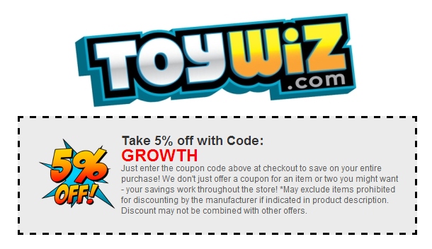 ToyWiz.com has thousands of in-stock items. Use the coupon code GROWTH and receive 5% off your purchase! Shop from an incredible selection of the newest and most popular action figures, toys, and collectibles including: