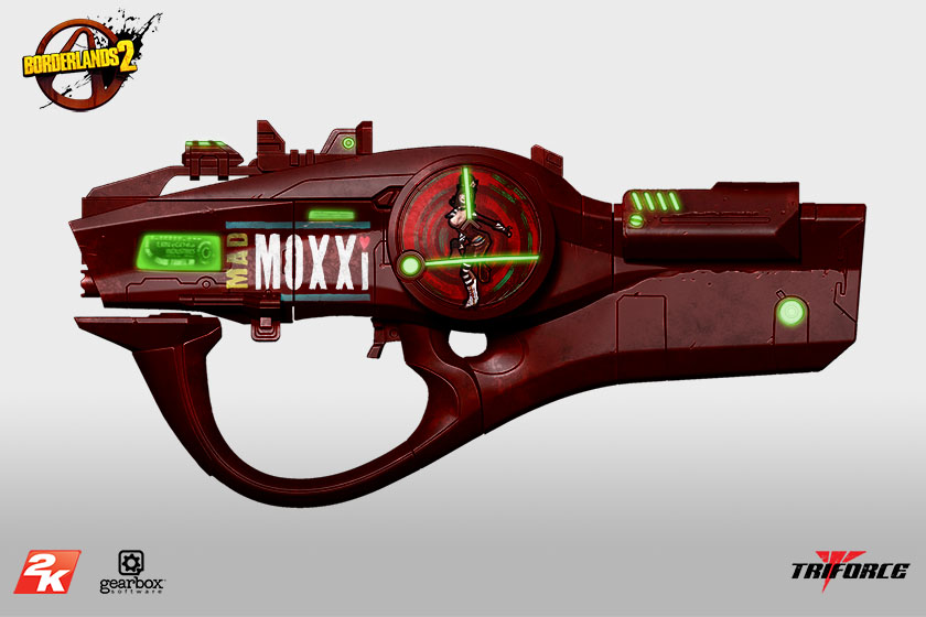 Available for pre-order now at projecttriforce.com priced at $650 (a payment plan is available), the Borderlands 2: Miss Moxxi "Bad Touch" Full Scale Replica measures 29 inches in length, weighs 20 pounds, and features working LED effects. It is scheduled to ship in the 2nd quarter 2015.