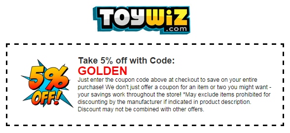 ToyWiz.com has thousands of in-stock items. Use the coupon code GOLDEN and receive 5% off your purchase! Shop from an incredible selection of the newest and most popular action figures, toys, and collectibles including: