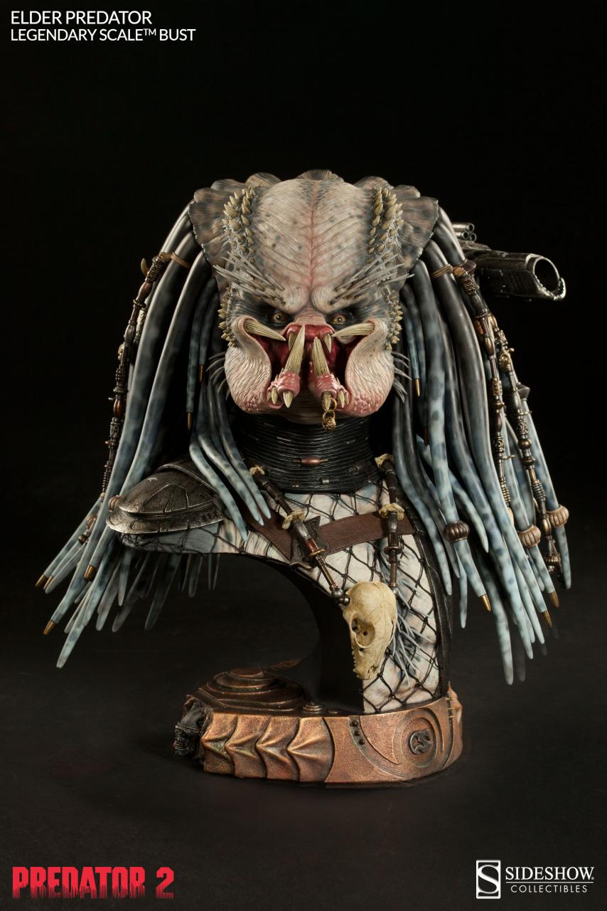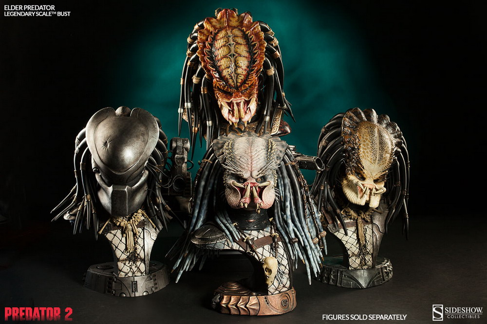 Sideshow presents the newest Predator to join their Legendary Scale Bust collection: the Elder Predator. This fan-favorite Yautja is sculpted as it appeared in Predator 2 with intricate tribal jewelry and shoulder-mounted plasma cannon. As with most all Sideshow Legendary Scale Busts, the exclusive edition will include an accompanying ‘Predator 2’ film nameplate (pictured below).