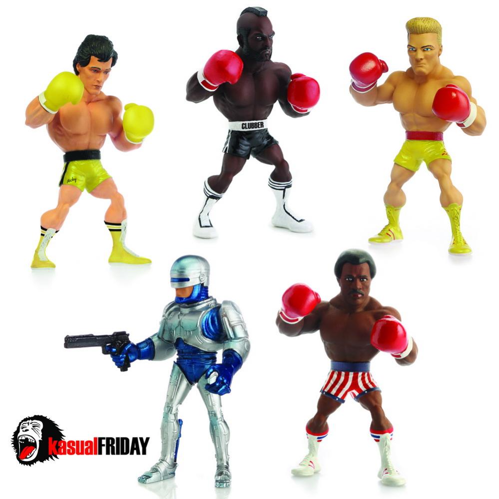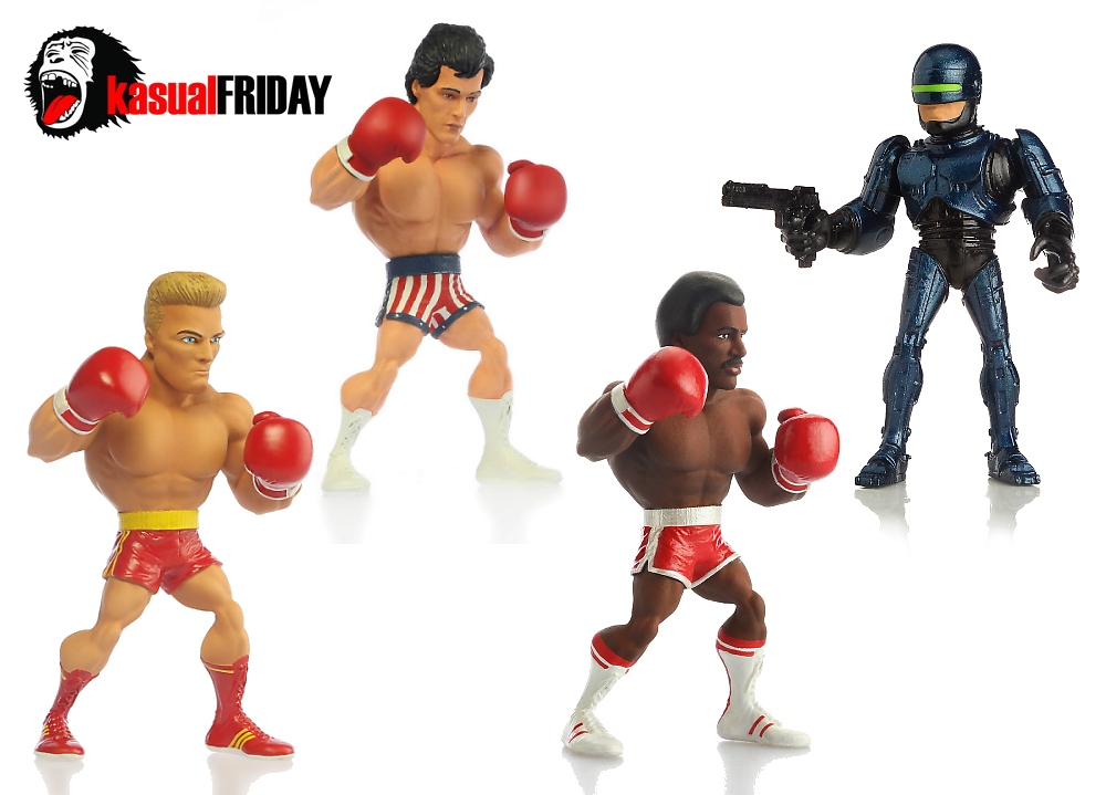 Kasual Friday writes in to inform fans of their 3" tall Superstars mini figures that the long-awaited Series 2 has arrived. In-stock now at many fine retailers, including BigBadToyStore.com, this star-studded assortment delivers three boxing movie legions: Rocky Balboa (in his classic striped trunks), Ivan "I Must Break You" Drago, and Apollo Creed (Rocky II red trunks). Also in this wave is a variant of Robocop, the future of law enforcement featuring an "OCP Concept" deco.