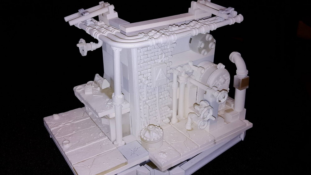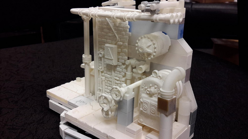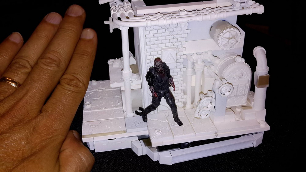 Todd McFarlane chimed in on his facebook page to express his excitement on how well his company's new Walking Dead Construction Sets are selling at retail. The success of the new line insures that new sets will be produced, including this early peek at the Prison Block Boiler Room. McFarlane points how how large this set will be (as indicated in the last photo below) and that it will include Rick Grimes and a Walker, not the figure shown (which was used just to show scale). Look for it in the second half of 2015 priced at around $19.
