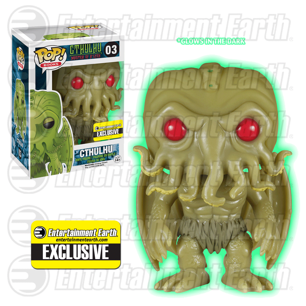 Toy and collectible retailer Entertainment Earth announces that they will be offering an exclusive glow-in-the-dark version of Funko's Cthulhu Pop! vinyl figure. The H.P. Lovecraft horror stands 3 3/4" tall complete with wings, tentacles, webbed hands and feet, and bright red eyes. The EntertainmentEarth.com exclusive is priced at $10.99 and scheduled to ship this March. Beware the power of Cthulhu!