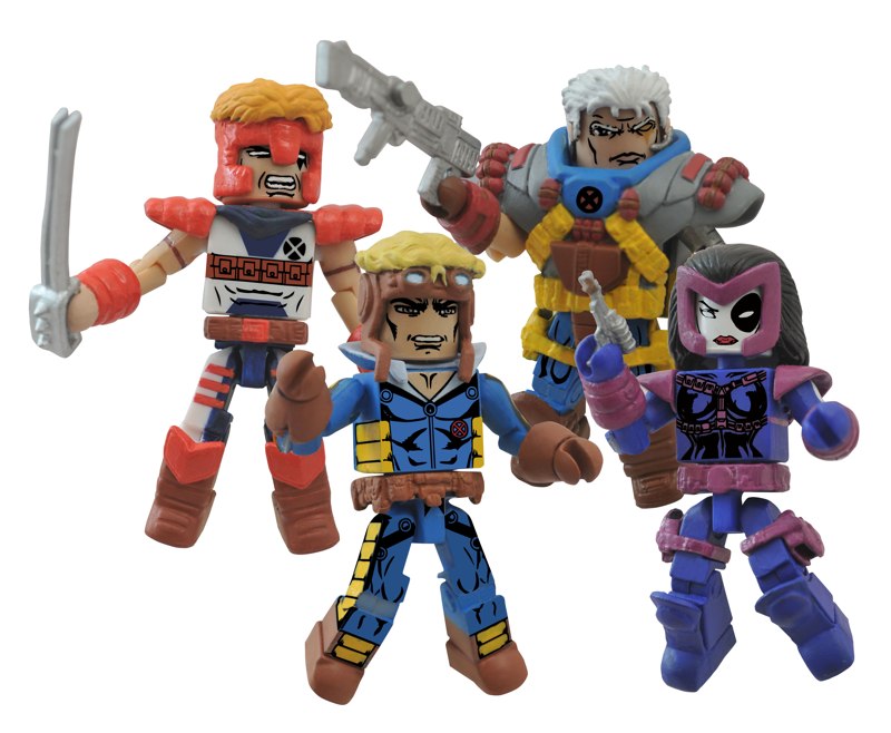 When a job needs to be done and the X-Men are afraid to do it, that's when X-Force steps in! Led by Cable, this team of young mutants is ready to bring the pain, and this box set flashes back to a time when stealth suits were unheard of and pouches were everywhere! The set includes Cable, Domino, Cannonball and Shatterstar, and each fully poseable Minimate stands approximately 2 inches tall and features a variety of interchangeable parts and accessories. Packaged on a blister card. (Item #JUL142036, SRP: $19.99)
