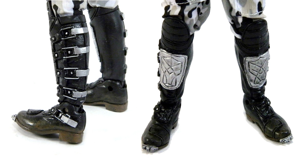 Complimenting his expertly tailored clothes, Snake Plissken stars wonderfully sculpted detail. For starters, there's the incredible Kurt Russell head portrait; stern look, 5 o'clock shadow and "I'm badder than a pirate" eye patch included. But it was Snake's boots that blew me away. I knew he had a Road Warrior thing going on (which by the way, actually released a few months after Escape From New York hit theaters), but *WOW* I had no idea his boots looked so cool! Snake's got the knee pads and etched metal shin guards we see clearly in the film, but I never noticed the spiked toes and plethora of metal buckles that line up the boot's back. Such a great look.