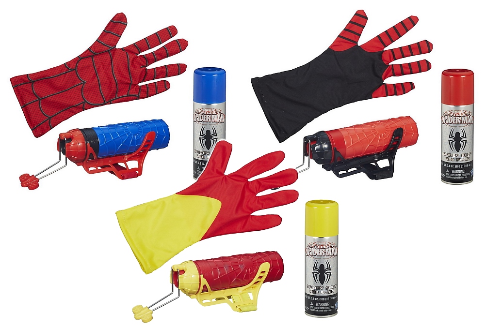 Imagine SPIDER-MAN adventures at a whole new level with this incredible Color Shock Slinger! Kids will be able to fire web fluid like their favorite web-crawling Super Heroes when they pull on the glove and attach the gauntlet. Kids can choose from different characters, including SPIDER-MAN, ULTIMATE SPIDER-MAN and IRON SPIDER, each with their own unique web fluid color. All out of Spidey Shot and surrounded by villains? No problem! The Ultimate Spider-Man Color Shock Slinger includes a special water canister. Load it in and you're ready to soak the bad guys and save the city! Each sold separately.
