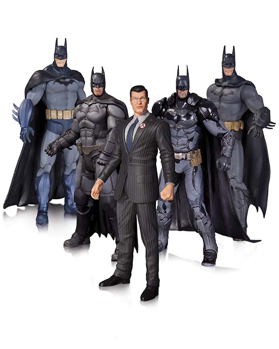 Don’t miss your chance to own this incredible set featuring four different Batman action figures plus a brand-new Bruce Wayne action figure, all based on the designs