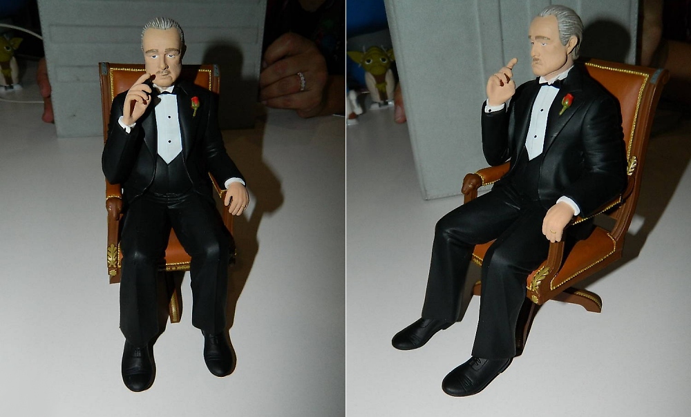 Shown fully painted for the first time was their upcoming figure of Marlon Brando as The Godfather. Seated in his chair, the realistically sculpted figure of the well-known movie mob boss is due out this year. SD Toys is working hard to get U.S. distribution approved.