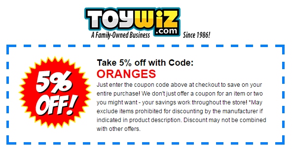 ToyWiz.com has thousands of in-stock items. Use the coupon code ORANGES and receive 5% off your purchase! Shop from an incredible selection of the newest and most popular action figures, toys, and collectibles including: