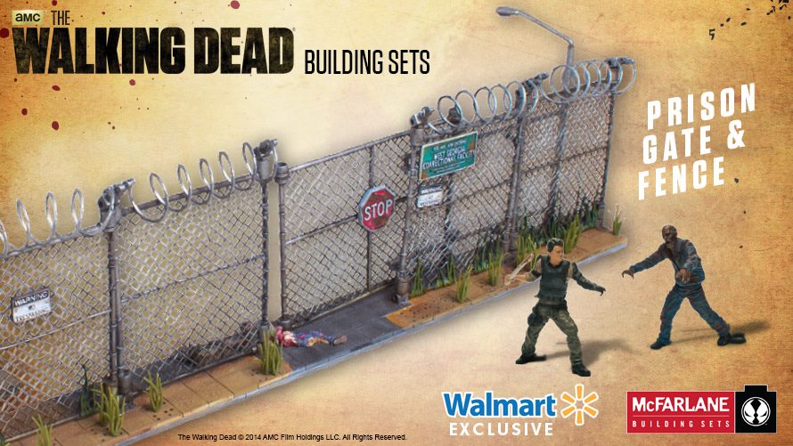 As previously reported HERE, select Walmart stores are carrying exclusive The Walking Dead building sets from McFarlane Toys. These include the Prison Tower and Gate and Fence. Previously these two sets were only available in the all-encompassing Prison set sold at Toys"R"Us.
