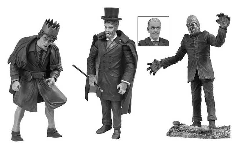 The Universal Monsters are back, with an all-new Legacy Series Box Set! Capturing three recent Universal Monsters Select action figures in glorious black-andwhite, this set brings together Quasimodo (from The Hunchback of Notre Dame), a Mole Person (from the Mole People) and a transforming figure of Dr. Jekyll and Mr. Hyde (from Abbottt and Costello Meet Dr. Jekyll and Mr. Hyde). The figures look like they just stepped off of the silver screen! Each 7-inch scale figure features 16 points of articulation and a small diorama base. Sculpted by Jean St. Jean! (Item #MAR152066, SRP: $50.00)