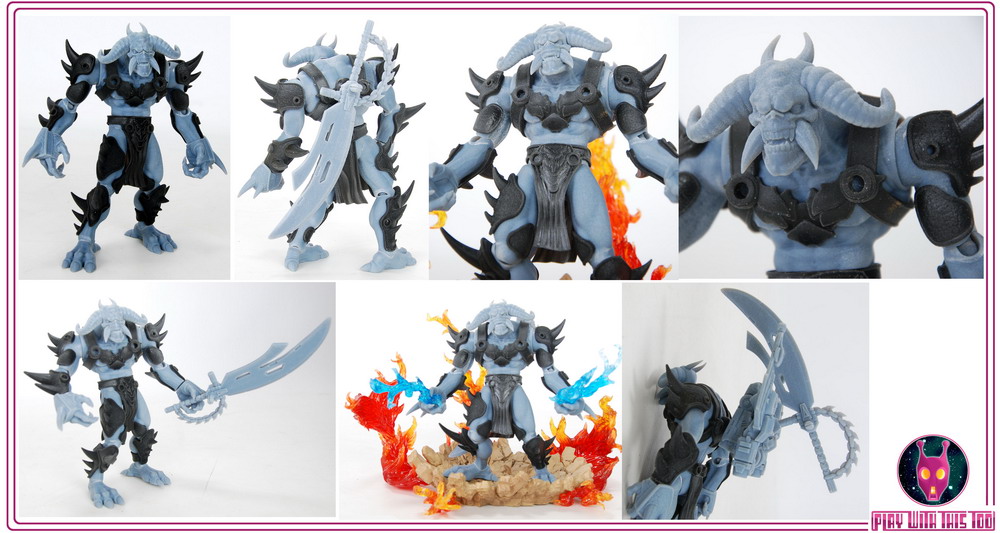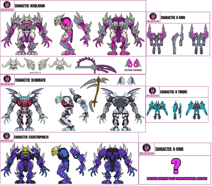 The Lost Protectors Kickstarter has an $80,000 goal with $60,743 already pledged and 13 days left to go. Should the project be successful, a pledge of $55 will get you one of three character figures: Desolataur (with Tech Drone D-Mon), Bloodbath (with Tech Drone D-Throne), and Catastropheles (with Tech Drone designed by Kickstarter backers). Of course these three initial figure offerings are just the beginning. Stretch Goals include tons of new characters, as well as swappable head packs ("Head Shots") and weapons.