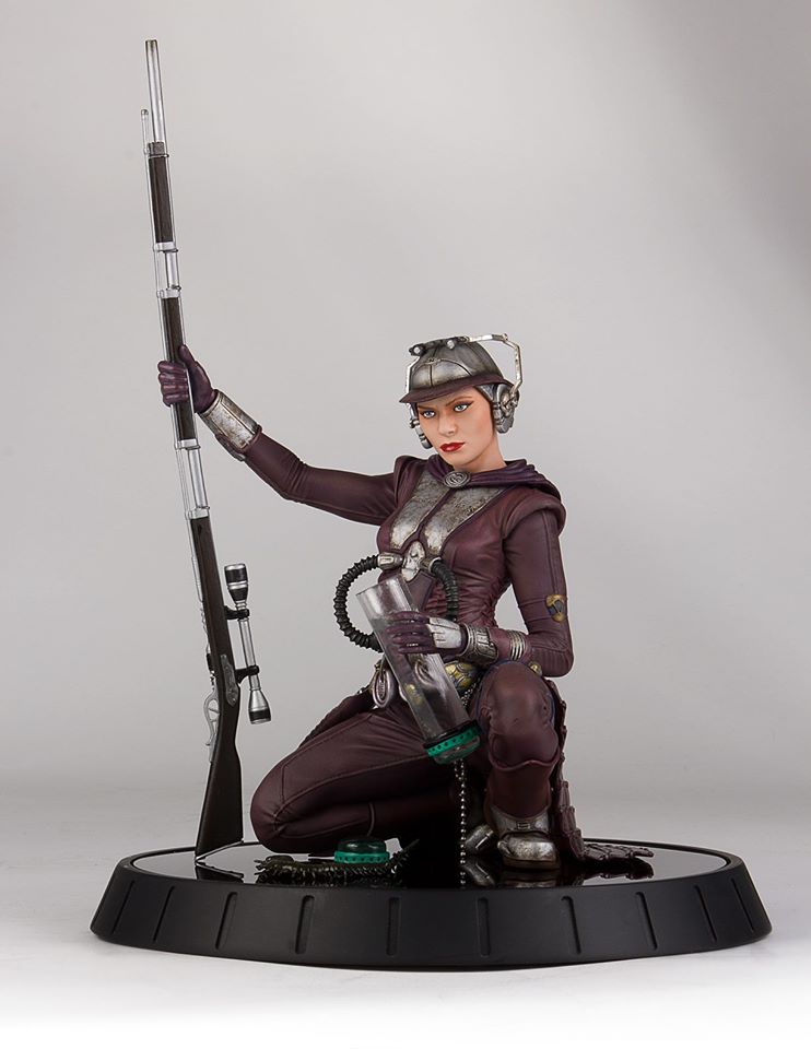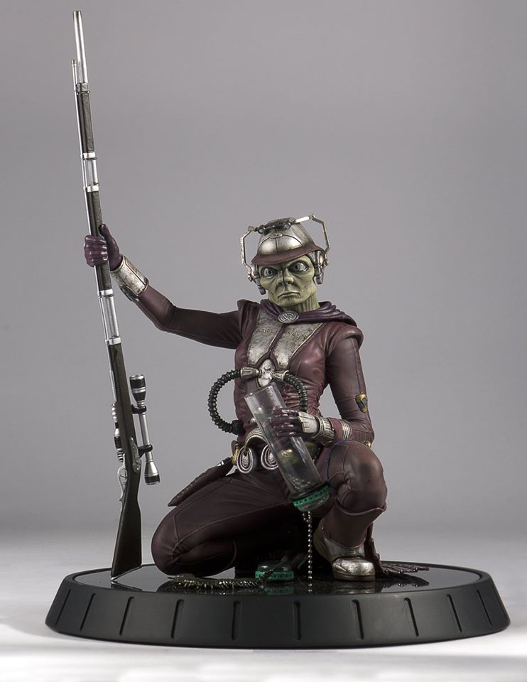 Gentle Giant presents their newest Star Wars statue: Zam Wessel, the shape shifting bounty hunter seen in Episode II: Attack of the Clones. Digitally sculpted, the Zam Wessel Statue features the changling assassin in her highly detailed costume holding her sniper rifle and container of Kouhun Worms. Zam also includes 2 interchangeable portraits: one humanoid portrait, and one Clawdite. Crafted using only the highest quality polystone, each limited-edition hand-painted statue comes individually numbered and is packed with a matching certificate of authenticity.