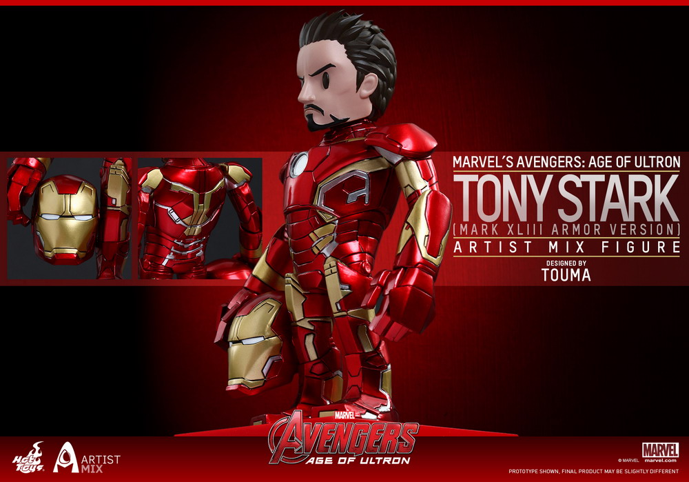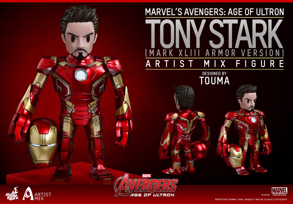 - Japanese toy designer TOUMA’s distinctive art style mixes with the design of Tony Stark in Mark XLIII armor in Avengers: Age of Ultron