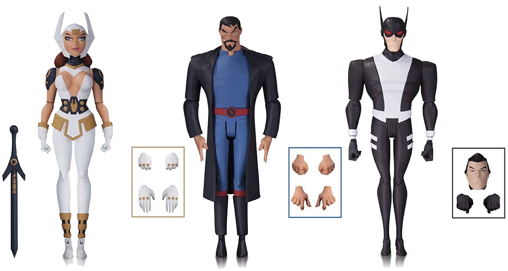 The designs from the original animated movie of legendary animator Bruce Timm are brought to life as articulated figures ready for action! Each figure comes with multiple accessories and base.