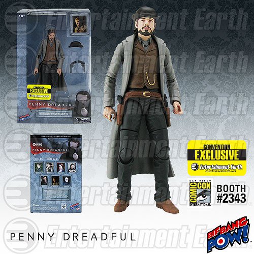 Entertainment Earth continues to roll out the San Diego Comic-Con exclusives, this time revealing three limited edition items from the series Penny Dreadful. Two 6-inch action figures will be offered, each priced at $22.99. These include Ethan Chandler, the brash American gunslinger (limited to 2800 pieces) and the seductive and enigmatic Vanessa Ives (3700 pieces).