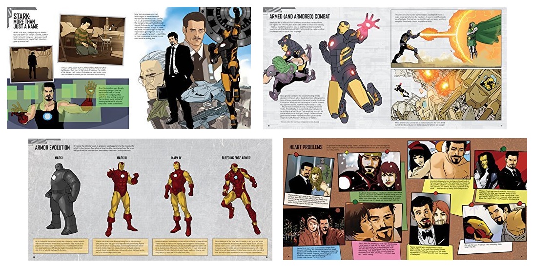 Tony Stark's view provides insight into everything from the various women he's dated and the luxuries he's enjoyed to the variety of roles he's played (prisoner of war, Avenger, SHIELD Director) and the various armors he's created. Other sections of the book feature a literal "who's who" of Marvel inventor, including everyone from Doctor Doom and Reed Richards to Bruce Banner and Hank McCoy, while other portions of the book include other Armored Marvel characters and how their powers compared to Iron Man's.