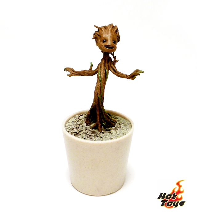 There have been lots of toys based on last summer’s epic blockbuster Guardians of the Galaxy, but among the best (of course) are those from Hot Toys.  Your main source for 1/6th scale figures, the Hong Kong company has created incredibly screen accurate figures of the main characters like Peter Quill aka Star-Lord, Gamora, Rocket, Groot, and more.  But that’s not all.  Hot Toys went above and beyond their usual offerings to create a unique ¼ scale collectible capturing one of the most memorable and endearing character moments from the film, and of course we’re talking about “Little Groot.”  After full-size Groot’s destruction during the crash of Ronan’s ship the Dark Aster, Rocket carefully cultivated a twig from the wreckage and before the final credits viewers got to see the fruits of that labor.  A new sprout took hold and Little Groot began growing like a potted plant... a plant that loves to dance!