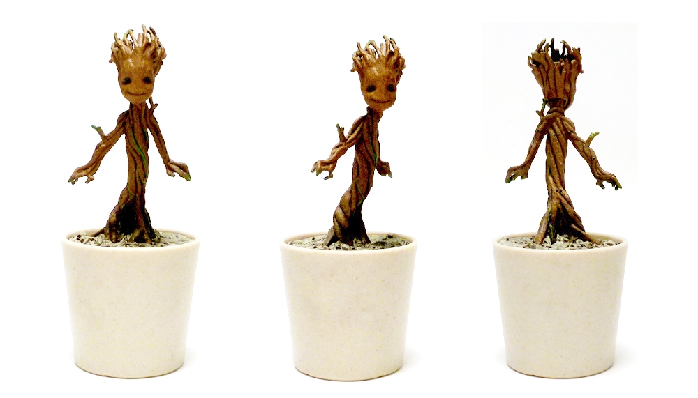 Hot Toys’ 1/4th scale Little Groot, with articulation and interchangeable heads, retails for about $45 and is available now.  It’s a great addition to anyone’s Guardians of the Galaxy collection, and a must have for Groot fans.  At that price it’s way more affordable than all of the other larger-scale Guardians figures and statues, and there aren’t a whole lot of quarter scale options from the film anyway.  Now this isn’t the only collectible representing baby/little Groot (and it ain’t the cheapest), but it’s by far the best looking and most detailed.  And while it doesn’t dance on its own you’re welcome to add some tunes and set him up in fun poses, or “freeze” him with the blank face ‘cause he stops whenever people are watching!