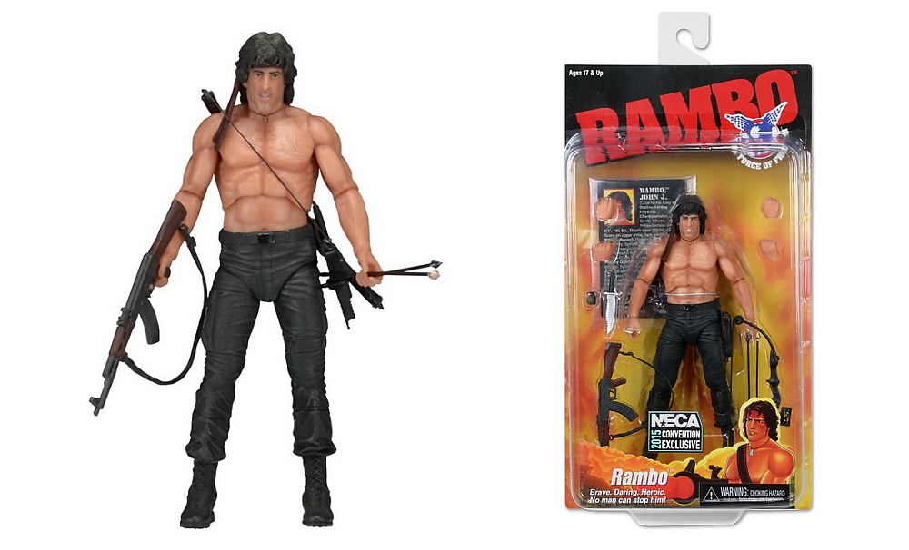 Brave. Daring. Heroic. No man can stop him! Our newest Rambo action figure is a tribute to the classic “Force of Freedom” line released by Coleco in the mid-1980s. Featuring the likeness of Sylvester Stallone, the figure stands approximately 7″ tall and has over 25 points of articulation. Rambo comes with machine gun, compound bow, arrows and knife accessories for the battle against S.A.V.A.G.E., as well as a collectible file card with bio. The blister card packaging is an homage to the classic version as well, and features a visual checklist for every NECA Rambo figure to date.