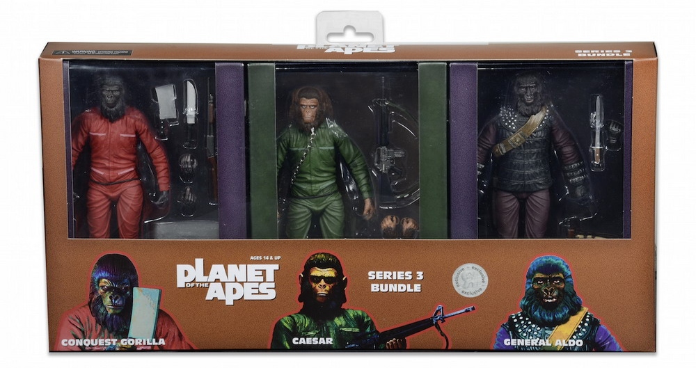 Classic Series 3 of our Planet of the Apes action figure line brings even more favorite characters from the original movies! The Classic Series 3 Convention Bundle includes individually packaged General Aldo, Caesar and Conquest Gorilla figures bundled inside a white outer box.