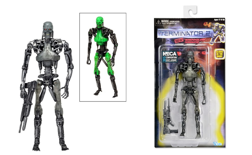 This fighter from the future is also a blast from the past! Our glow-in-the-dark Endoglow Endoskeleton is a tribute to the classic Kenner Terminator 2 line of the early 1990s. Taking inspiration from that design, our team has applied modern sculpting, detail and articulation to upgrade the figure for modern fans. Endoglow Endoskeleton glows in the dark after being exposed to light for a short time, and comes with plasma rifle accessory. The figure stands approximately 7″ tall and features over 25 points of articulation. The special blister card packaging is an homage to the classic card art as well, and features a visual checklist for every NECA Terminator 2 figure to date.