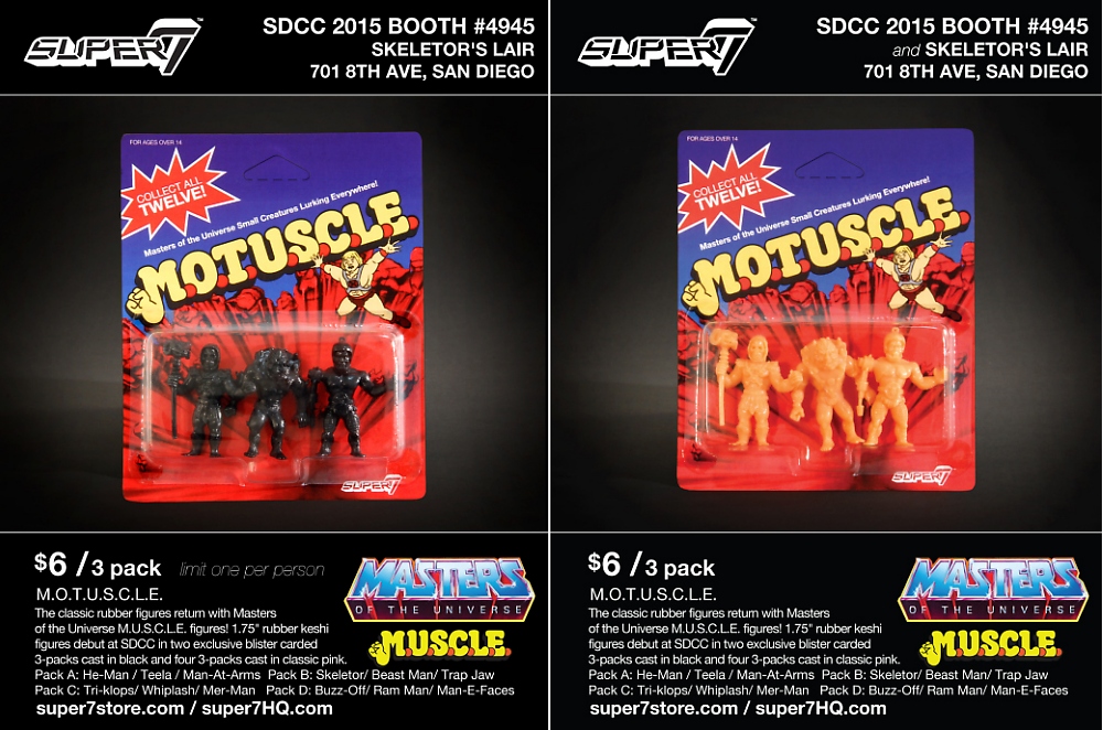 As reported to you yesterday HERE, San Diego Comic Con's Skeletor’s Lair will be destination for Masters of the Universe fans. The Super7 pop-up shop will require a Skeletoken to get in, the coin available at both Super7's Booth #4945 AND Mattel's Booth #3029. Once inside, MOTU fans will be able to purchase a variety of Eternia-themed exclusives, including the Masters of the Universe Stage 01 Prototype Action Figure Collection revealed yesterday, as well as a new line of retro MOTU-themed M.U.S.C.L.E. men, appropriately called M.O.T.U.S.C.L.E. Check out the teaser video above.