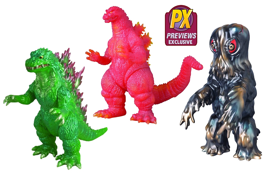 Exclusive Godzilla Vinyl Wars (GVW) soft vinyl Sofubi figures from the Medicom return in the July PREVIEWS catalog for fans to pre-order. This wave of GVW figures features two different incarnations of the world’s most famous kaiju, as well as another popular monster from Godzilla movies, and all are scheduled to release in comic book specialty shops in late September 2015.