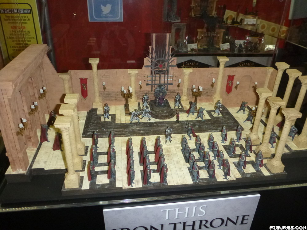 One of the biggest splashes in the toy world in recent years was the surprise entrance of McFarlane Toys in the constructible toy arena with their R-rated the Walking Dead sets. Just before Comic-Con started we shared the news that they were adding another property to their lineup and it’s a second unique choice: Game of Thrones! Based on the HBO TV series, these building sets bring to life scenes, locations, and characters from the show with themed box sets in multiple sizes and figure packs. We saw the Mother of Dragons box ($20, January), Iron Throne Room ($30, December), Lannister Banner Pack, Stark Banner Pack, Blind Bag Figures, and the amazing Attack on the Wall featuring giants ($40, January)! As you can see in the photos, you can connect multiple sets and bring figures together in massive displays.