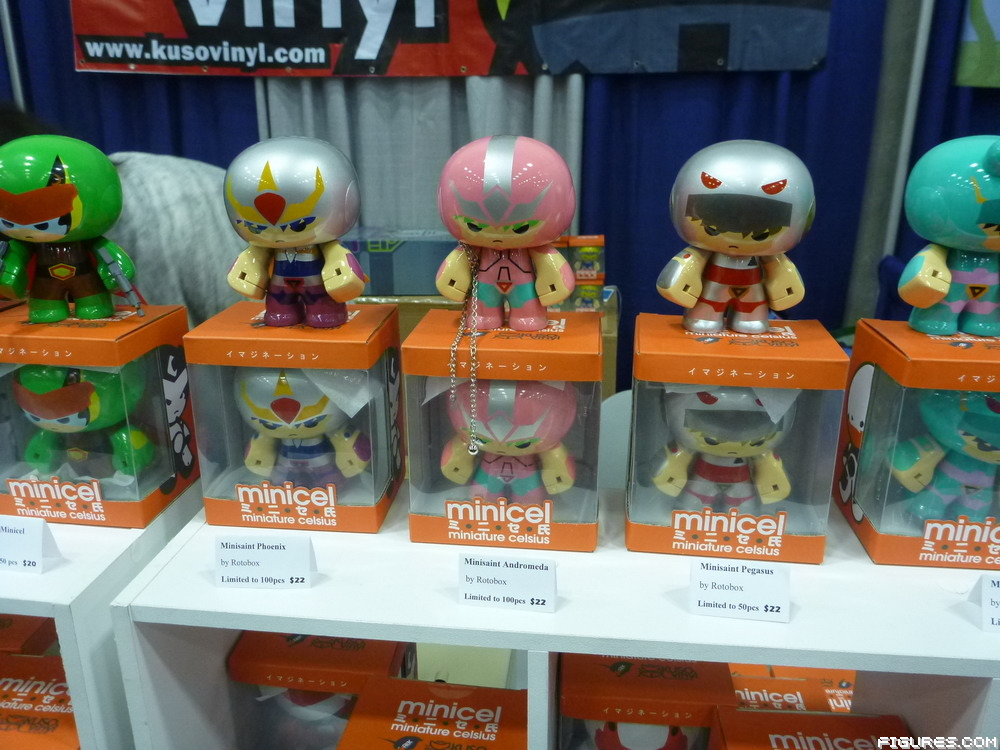 One of the great vinyl toy companies we always check out at San Diego Comic-Con is Kuso Vinyl, whose past products have included the Thundercraps (based on the Thundercats) and Spiki the Wolfman (based on Teen Wolf). This year they brought lots of their smaller figures to Comic-Con focusing on the adorable KusoPon and the aggressive warrior Minicel (both designed by Rotobox). Both come in countless variations based on different characters, artists’ works, references, and more, and at Comic-Con attendees had the chance to get their hands on unique figures that debuted each day like the different Minicel Minisaints, and the highly sought after variants sold out rapidly.