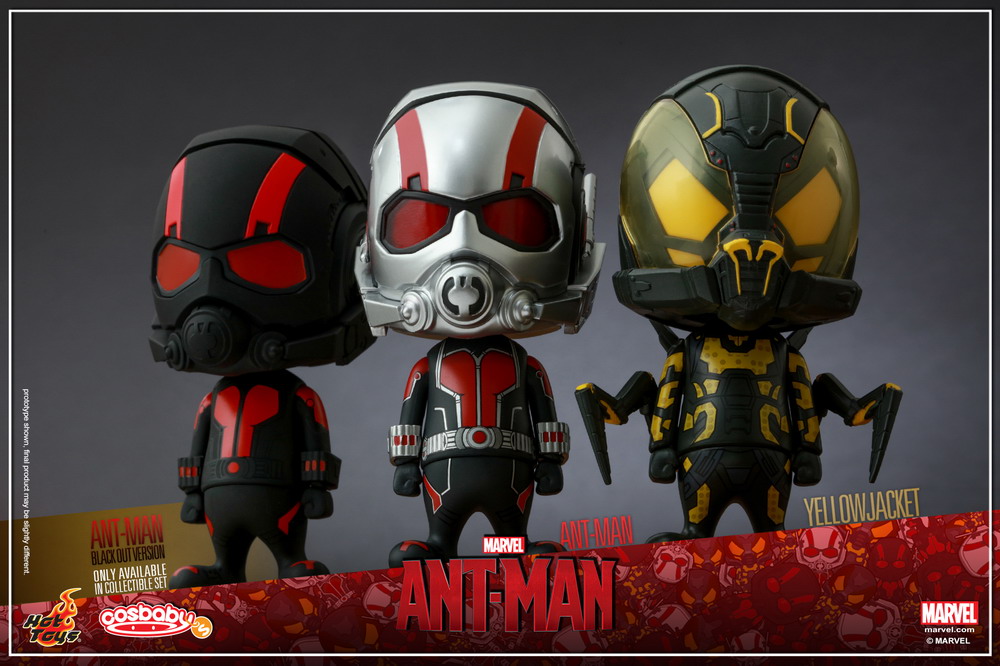 Marvel’s latest superhero hit, Ant-Man, opens in theaters this Friday and to celebrate Hot Toys presents the Ant-Man Cosbaby Series. This series will include Ant-Man and the movie’s villain Yellowjacket. Each figure stands approximately 4-inches tall (9.5cm) and features a bobble-head function. A Collectible Set of 3 is also available which will feature the two aforementioned characters plus a special Ant-Man (Black Out Version) that is only available in this set.