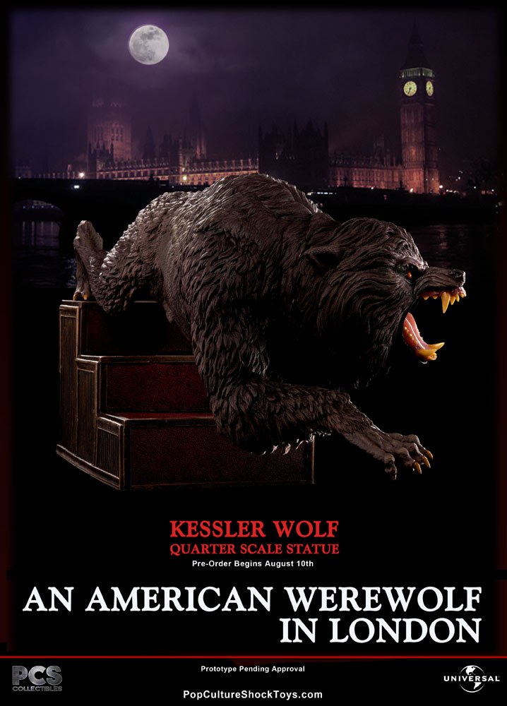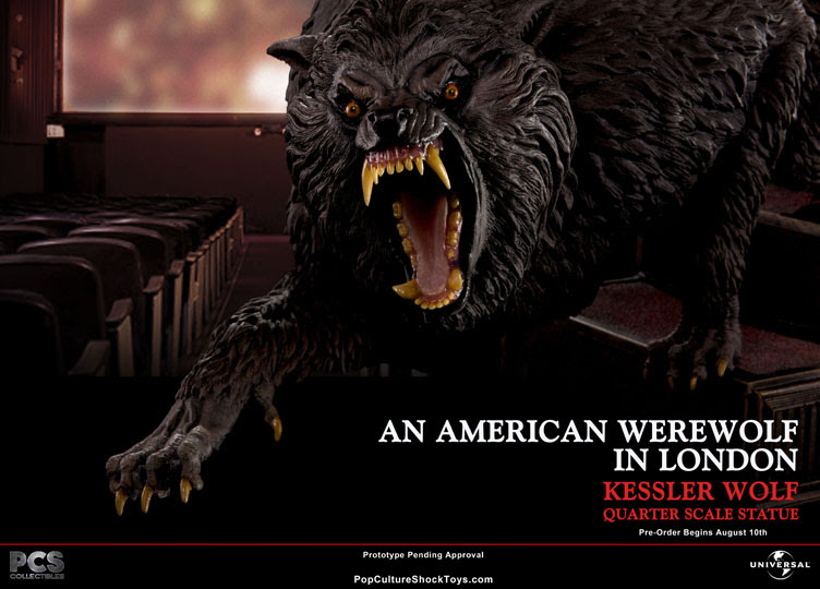 Pop Culture Shock unveils their first collectible from the cult classic film, An American Werewolf in London. Cast in 1:4th scale (21.5" L x 10.5" H x 9" D), Pop Culture Shock will be bringing fans the iconic werewolf from the film, the Kessler Wolf. Pre-orders begin on August 10th at 3pm PST, the statue available at popcultureshocktoys.com as both a standard release (limited to 500 piece) and a PCS Exclusive (300 pieces) that includes both closed mouth and open mouth 'switch-out' heads. Both versions will be priced at $399.99 and are expected to ship 3rd quarter 2016.