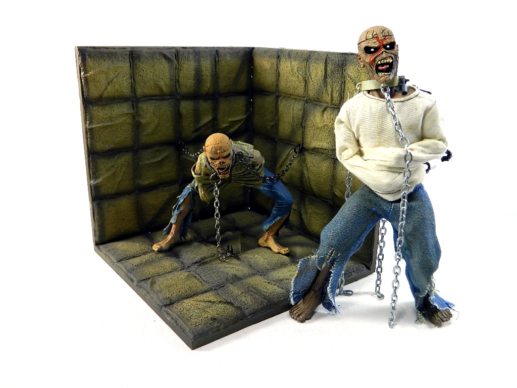 While sans the cool diorama, this Eddie still retains a powerful mental metal attitude. The head portrait in particular is really nice, Eddie's crazed look easily surpassing the 7-inch figure's sculpt in detail and expression. NECA's Mego-style figures have only gotten more articulated as the series has progressed, the company now using the Type 2 body. Ironically, Piece of Mind Eddie doesn't use half of it, NECA purposefully restraining figure arm movement with, what else, a real-cloth straight jacket! Complete with numerous faux leather straps, buckles and real-metal chains, Eddie looks like he has just escaped from a mental asylum. So yeah, while the padded room base is missed, posing Eddie in a variety of insane poses as if he has broken free is still pretty cool.
