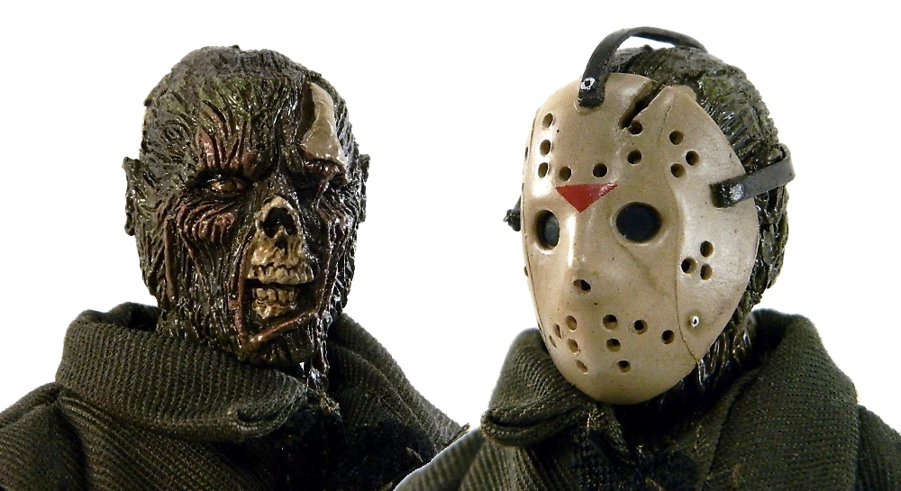 With Jason Lives, collectors receive two cool portraits to display: Jason Voorhees wearing his iconic hockey mask, or maskless revealing his new decomposing zombie face. What's neat here is that you can actually insert Jason's included machete in the slash in the hockey mask, the same place where he got killed in part four's The Final Chapter!