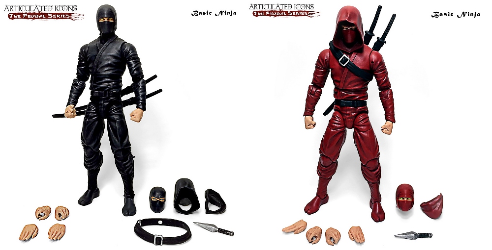 The initial launch will be composed of four figures and a modular wall-mountable base pack. The Basic Ninja, available in black and red variations, will be offered as a single release or in discounted packs of three. The Deluxe Ninja, with the Ninja Master head sculpt, includes a unique belt and shins, as well as new weapons and accessories. The Deluxe Ninja will be available in both black and white variations and will also include one rooftop base. The modular wall-mountable base will also be available in bulk sets of five.